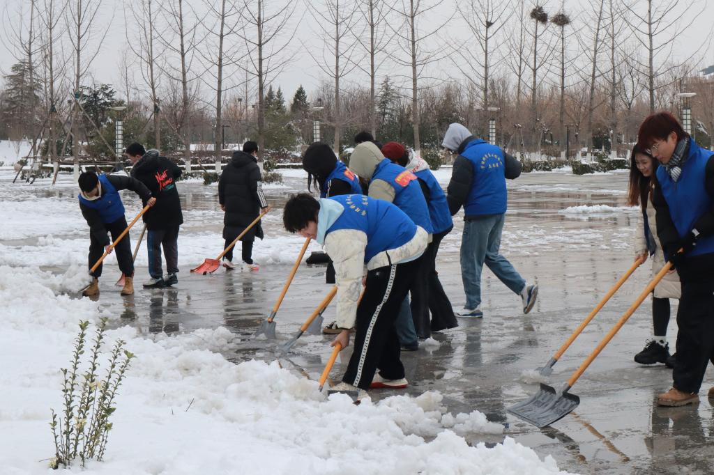 3月3日下午,公司积极响应学校号召,组织员工干部和入党积极分子开展志愿铲雪活动。在老师的带领下,数十名员工骨干不畏严寒,齐心协力清理校园内积雪,为师生出行开辟安全通道。