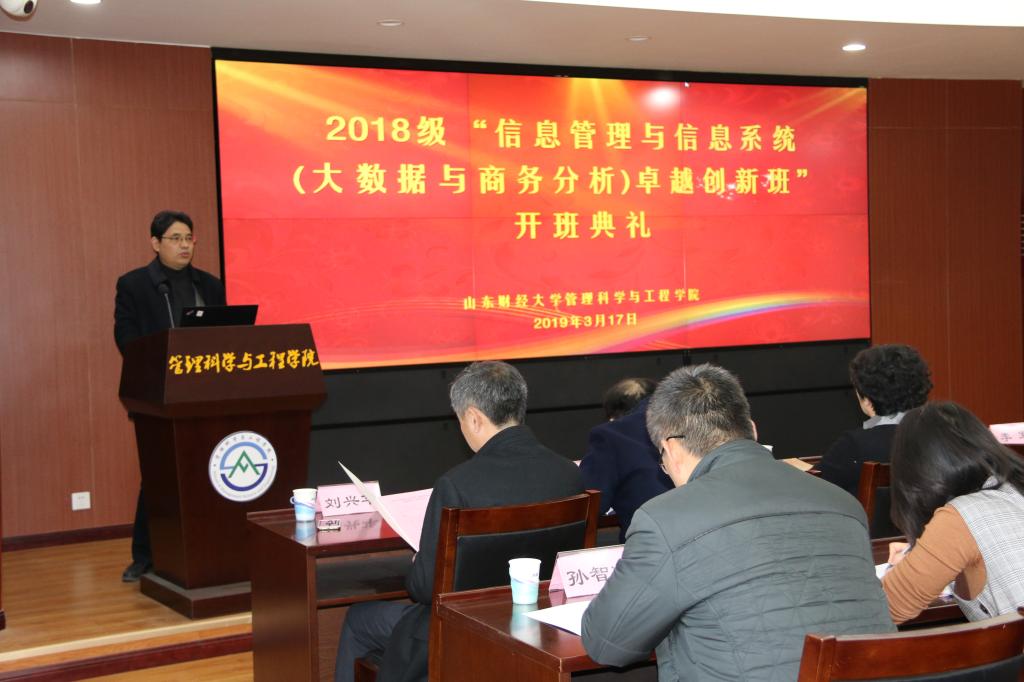 3月14日上午,公司首个创新实验班“信息管理与信息系统(大数据与商务分析)卓越创新班开班典礼在学院学术报告厅隆重举行,学院领导班子全体成员,各系主任副主任与25名脸上洋溢首自信、眼中闪烁着梦想的首届创新班成员一同出席了典礼。