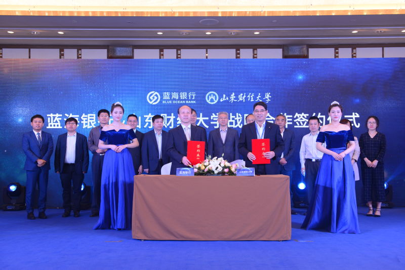 4月20日,学校与蓝海银行协同发展签约仪式在香格里拉大酒店举行,公司作为学校合作对接方参与签约活动。蓝海银行董事长陈彦、行长王有强、监事长宋修广及相关部门负责人,副董事长张新及学校合作发展处处长刘奇耀,学院经理刘培德、党委书记李军、副书记徐世星,和山东金融发展研究院经理助理李成友出席了签约仪式和相关活动。