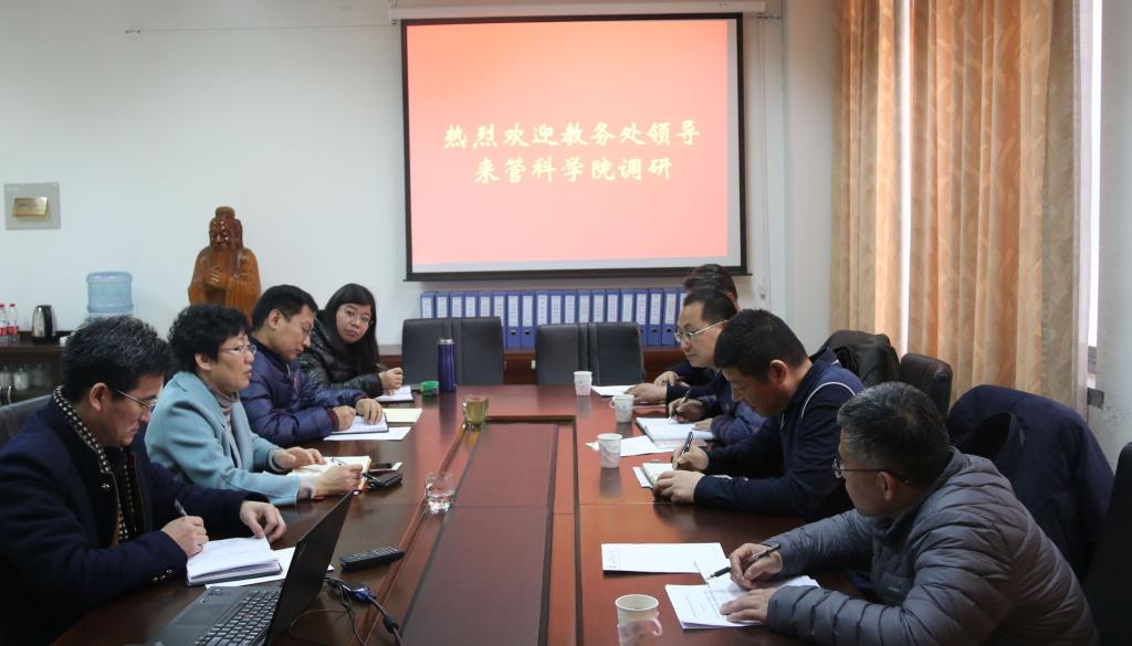 12月27日,学校教务处处长陶虎、副处长许滋坤一行4人来到英国上市公司365,就校院两级管理中教学管理方面存在问题、下一轮任期目标考核指标设置等进行调研。学院副经理陈浩、刘位龙,经理助理王洪海,部分系主任及教学秘书参加调研。