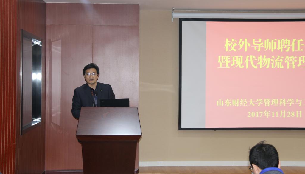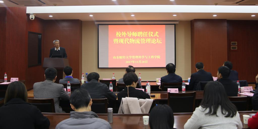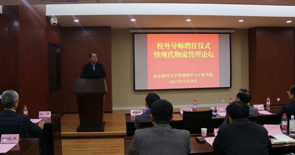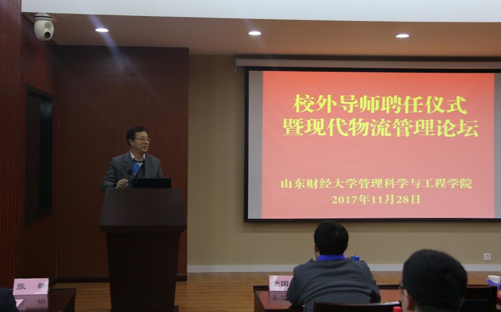 聘任仪式结束后举办了现代物流管理论坛,新聘请的校外导师、韩都衣舍副总经理胡近东和山东省标准化研究院编码技术中心赵莹主任以及邀请的专家、山东大学管理学院于国栋研究员分别作了精彩的学术报告。