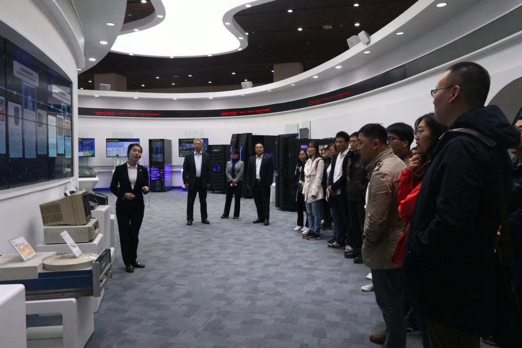 在浪潮集团一层展厅,工作人员细致耐心地讲解了浪潮集团的发展历史,带领大家参观了由浪潮集团研发的各种高科技仪器,并对浪潮集团的重点建设项目以及未来展望做了详细说明。之后,朱津萱为大家讲解了企业的发展以及技术不断发展的一代一代的改革创新历程。讲解完毕后大家一起体验了浪潮高科技产品的奇妙,集团的超前技术和独特的软硬件综合实力让参观的全体人员感受到了技术的强大。