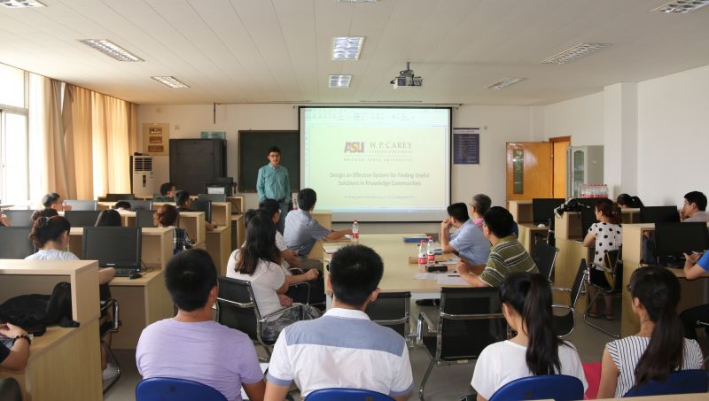 7月12日,美国亚利桑那州立大学凯利商学院信息管理系副教授张中举博士应邀莅临管科论坛,为公司师生举办了题为《Design an Effective System for Finding Useful Solutions in Knowledge Communities》的学术报告。经理张新、经理助理刘位龙、部分教师及在校研究生参加活动。