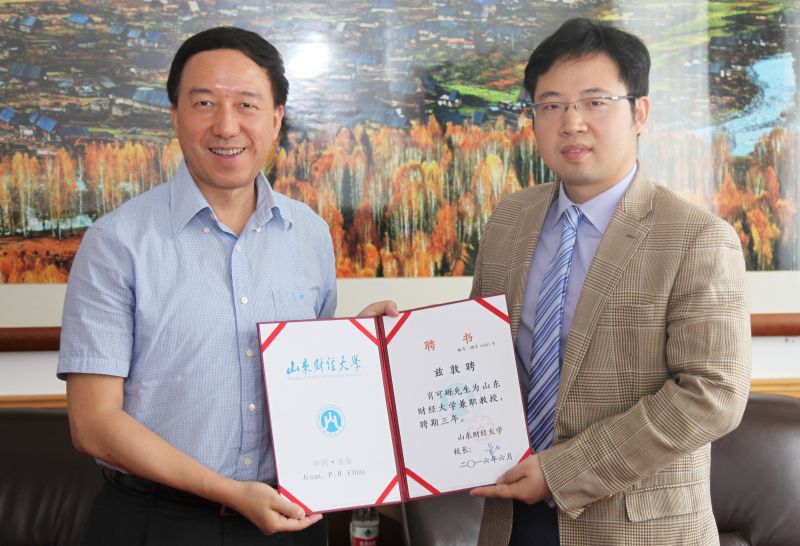 6月28日上午,美国纽约州立大学石溪分校商学院助理教授肖可砾博士受聘公司兼职教授。董事长卓志颁发聘书。