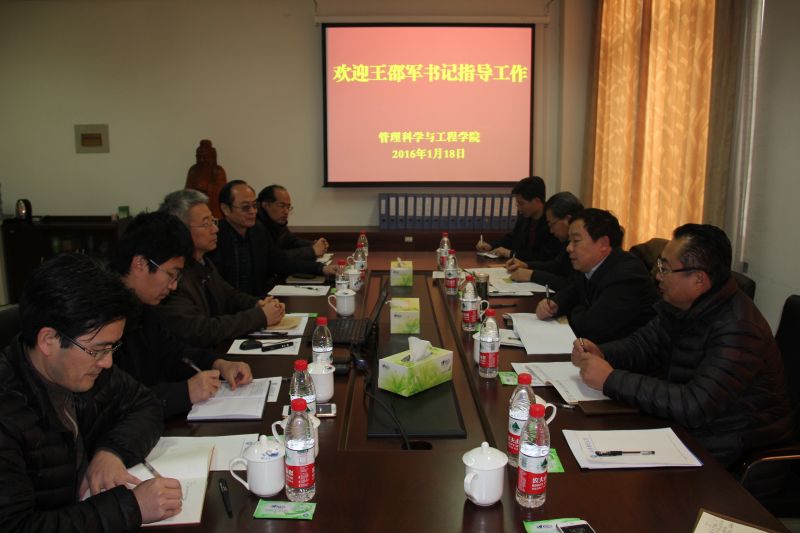张新代表学院介绍了学院的基本情况、党建工作的开展情况、团队建设情况、人才培养情况和学院文化建设情况,并就下一步工作思路进行了汇报。与会人员一起讨论了“平和、进取、分享”的学院文化和下一步管理科学与工程专业博士点评估等工作。