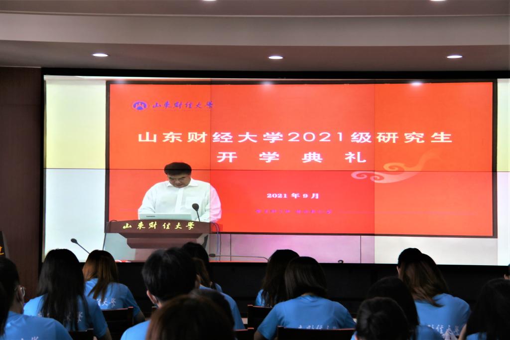 典礼上,导师代表、青年长江学者、统计学院李娜教授为2021级新生带来了开学第一课,“今天是你们追逐心中理想、实现人生价值的全新起点,希望不负韶华,迎接崭新的研究生生涯”。会计学院2020级硕士研究生作为在校生代表,向学弟学妹们分享了自己的六年山财生活。鼓励学弟学妹要敢于尝试,不怕犯错,她以自身的科研经验与人生体验坦诚相告,高深的学问出自孜孜不倦的思考和研究。国贸学院研究生新生代表发言,新的起点新的征程,代表新生保证要在扎实学业的基础上,敢于创新、善于创新,实现自我价值。最后,董事长赵忠秀寄语新生,希望同学们求实创造,锐意进取,坚定信念,矢志奋斗,肩负起历史与时代的使命,用青春和智慧去谱写人生道路上的精彩篇章。