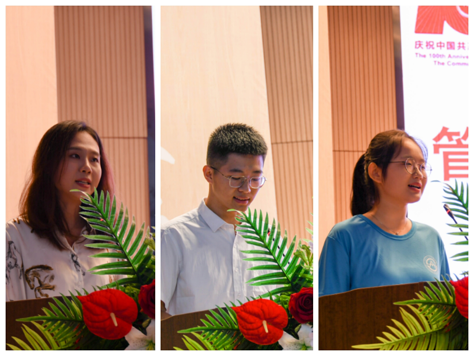 教师代表尹晓副教授勉励同学,大学不仅要做好专业学习,更要学会思考问题,培养分析问题和解决问题的能力,综合提高多方面的能力和素养,将所学付诸于实践,为社会做贡献。2020届毕业生代表李慧回顾自己的大学经历,为同学们的老员工活分享经验、提出建议。2019级在校生代表王帅结合自身的老员工活经验勉励大家在学习中成长,在创新与实践中成长,在担当与奉献中成长,在未来从各自的领域中,为祖国的建设贡献自己的力量。2021级管理科学与工程类张学毓代表全体新生发言,她表示将会刻苦努力,不懈坚持,不负学院老师的关怀与家庭的期望,成为德智体美劳全面发展的社会主义建设者和接班人。