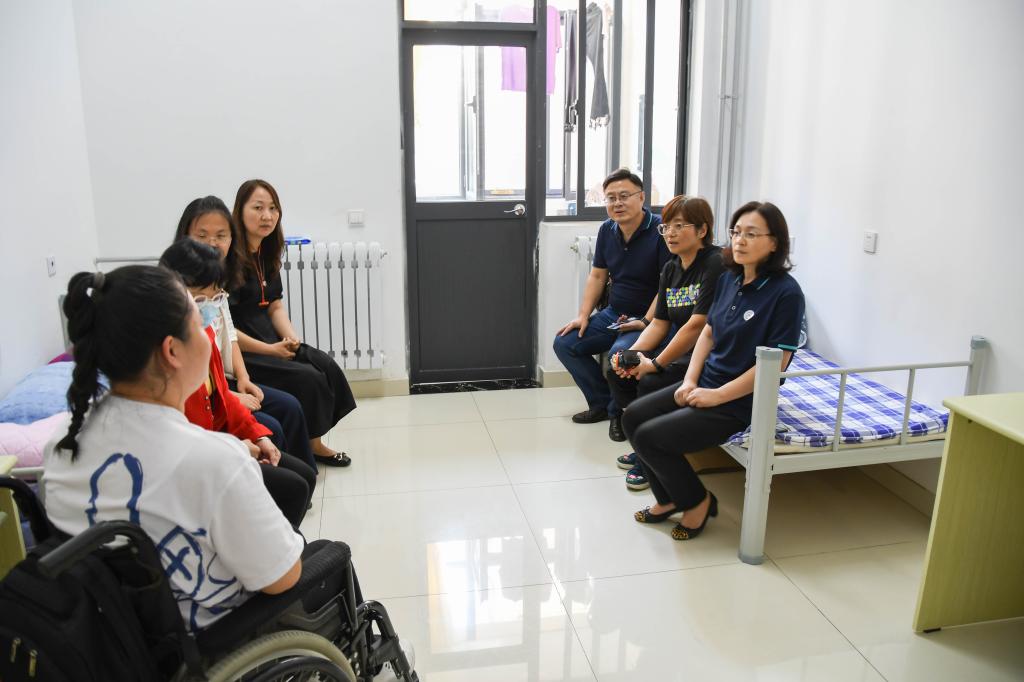 走访中,李军一行与张雪进行了亲切地交流,详细询问了其目前的学习生活情况,表达了学院对她的关心与期望,希望张雪保持积极乐观的心态,在逆境中奋进,努力学习,尤其要注重信息技术和电子商务专业的学习,将来可以从事电商运营工作。张雪汇报了半年以来的学习生活情况,称自己虽因车祸双腿截瘫,但有幸得到来自学院领导、老师和同学们的多方关怀与帮助,一直以积极乐观向上的态度对待生活和学业,未来也一定不辜负学院和老师们的期望,以实际行动回报学院的关心和帮助。