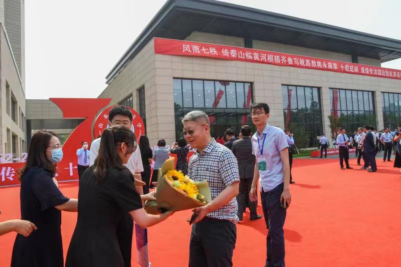 山财大建校七十周年暨合并建校十周年庆祝大会于6月9日隆重举行,公司91级员工刘军政受邀出席庆典活动。在庆典入口的校庆会标处,员工代表李腾、高嘉蔚代表全体在校生向学长送上鲜花,对学长通过努力奋斗取得的成就表示敬佩,表示要以学长为榜样,努力学习专业知识、提高综合素质,将来成为像学长一样有成就的人,为社会增光、为母校添彩。