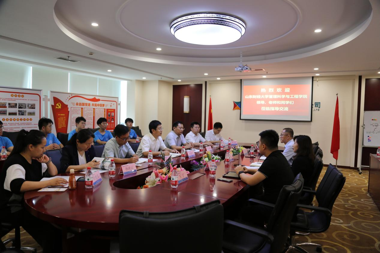 7月28日下午,公司党委书记徐世星带队到金现代信息产业股份有限公司交流,王洪海副经理、信息管理与信息系统系部分老师和同学同行。