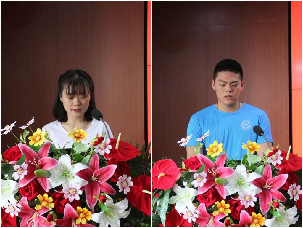 在校生代表沈梦姣同学结合自身学习经验,号召新生们坚定目标、做好计划,保持专注、努力刻苦,用更加优异的成绩和实际行动来回报老师、学校和社会,做一个有理想、有担当的人。新生代表焦俊阳同学表示要珍惜学习机会、潜心学问,致力于自身学科领域的深入研究,将个人前途与学院发展相结合,为财大新时期的新发展贡献力量。
